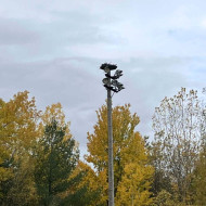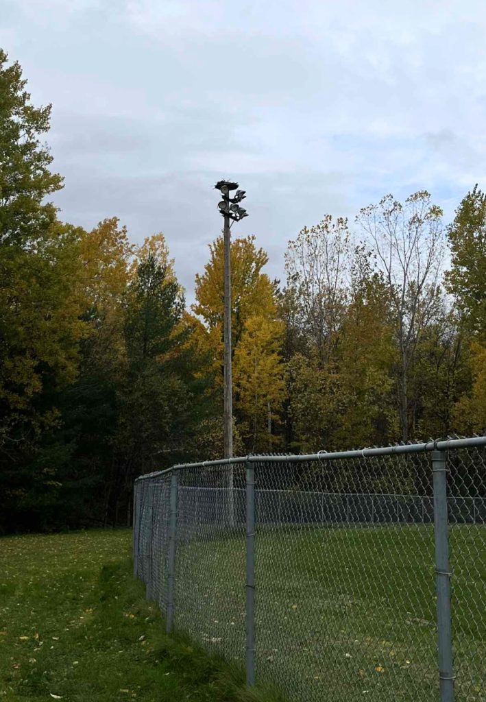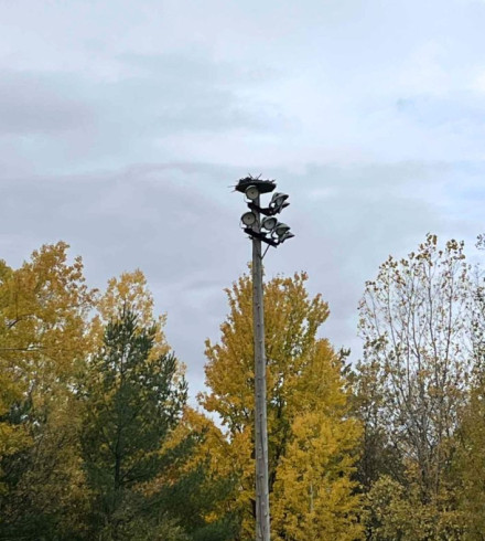 Mais au-delà du remplacement des lampes, le chantier comportait un défi particulier : préserver le nid emblématique des balbuzards pêcheurs perché au sommet d’un luminaire du terrain de balle.